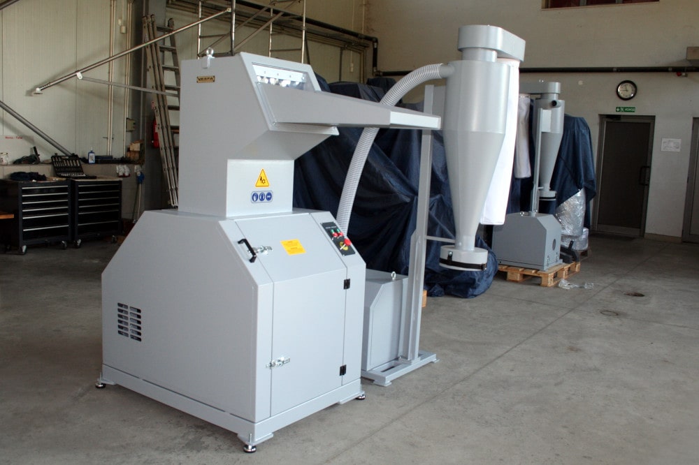 VESPA Small series beside-the-press granulators are ideal for grinding smaller rejected plastic parts and plastic waste (primarily from injection and blow moulding processes). The rotor as well as the cutting chamber are easy to access, making cleaning and knife changes quick and effortless.